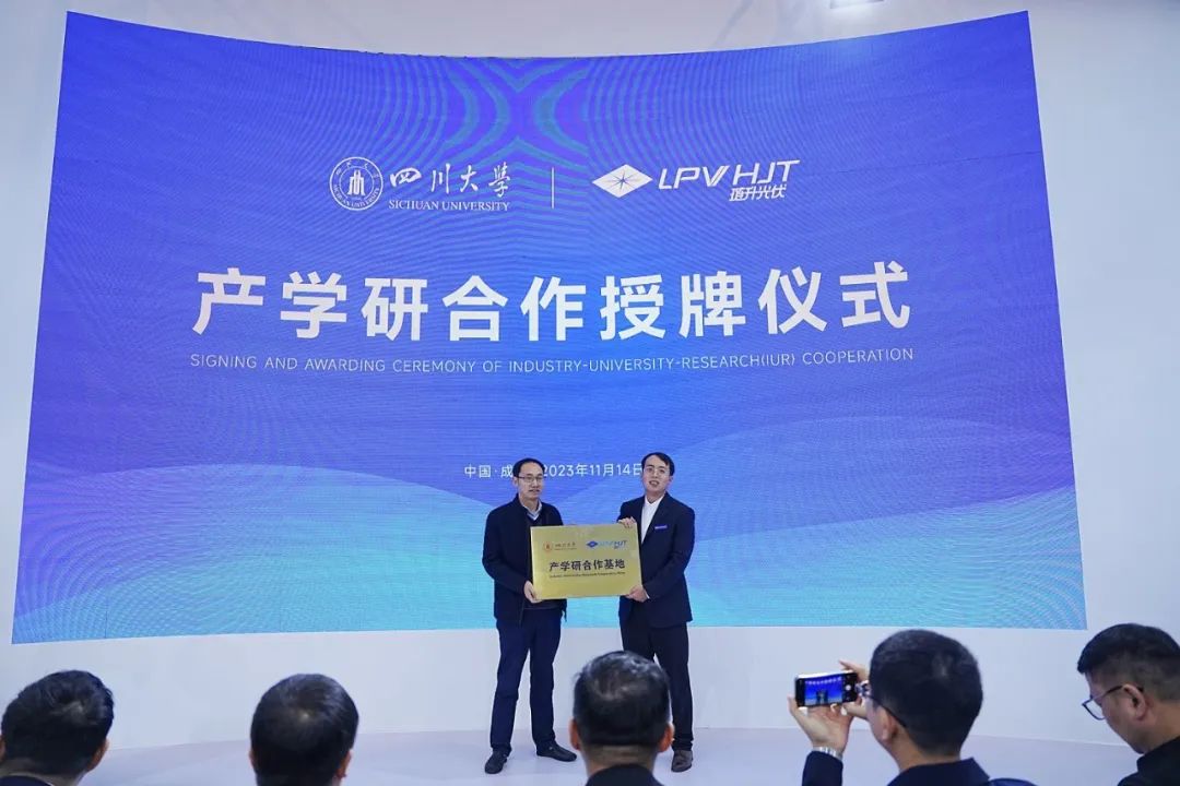 琏升光伏与四川大学签订产学研合作协议并进行授牌仪式。四川大学材料学院叶金文副院长上台授牌,琏升光伏总经理唐旋上台接受授牌。四川大学是教育部直属全国重点大学,985、211双一流学府。签约四川大学,为琏升持续发展蓄势赋能,以人才制高点,抢占发展制高点。