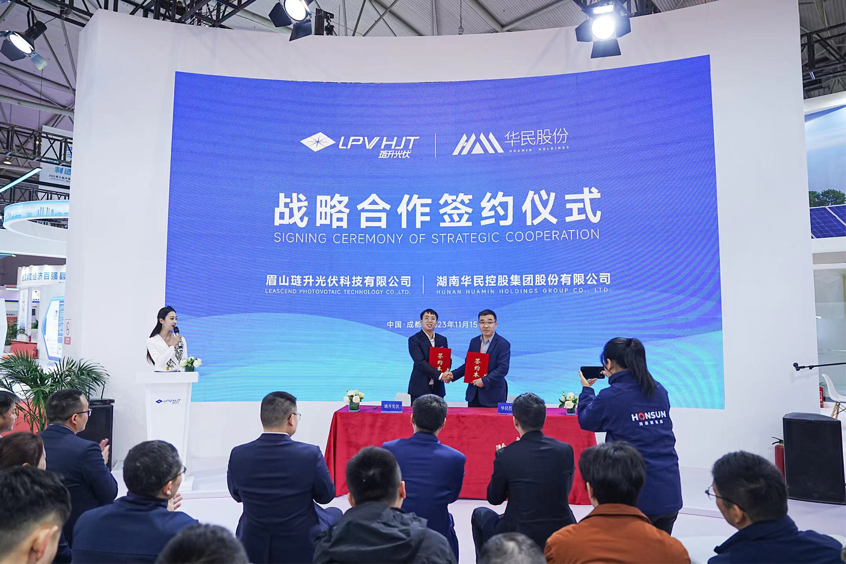 琏升光伏与华民股份签约战略合作框架协议。琏升光伏总经理唐旋、华民股份总经理夏宇上台签约。华民股份是一家致力于成为一流N型低碳高效单晶硅片的供应商。此次琏升光伏与华民股份构建战略合作伙伴关系,将共同推进在光伏电池及原材料领域开展深度合作。