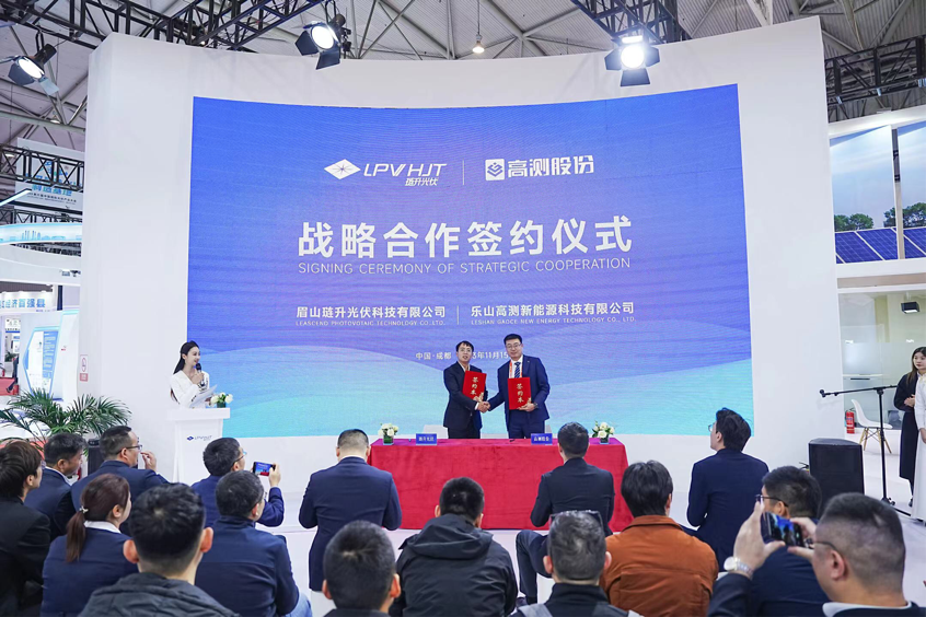 琏升光伏与乐山高测新能源科技有限公司签署战略合作框架协议。琏升光伏总经理唐旋、乐山高测总经理施建上台签约。高测股份以科技创新为先导,把握硅片代工优质赛道新机遇,迅速拓展硅片切割加工服务项目。琏升光伏与高测股份携手合作,将带来广阔的机遇与发展空间。